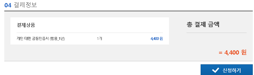 신청서를 클릭 후 수수료를 확인한 뒤 바로 신청을 눌러줍니다.