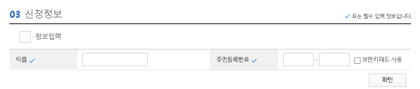마지막으로 신청정보(이름, 주민등록번호)를 입력해준 뒤 추가 작성란에 정보를 작성해줍니다.