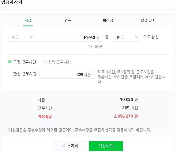 최저임금 계산은 네이버 임금계산기를 사용하면 편리합니다.